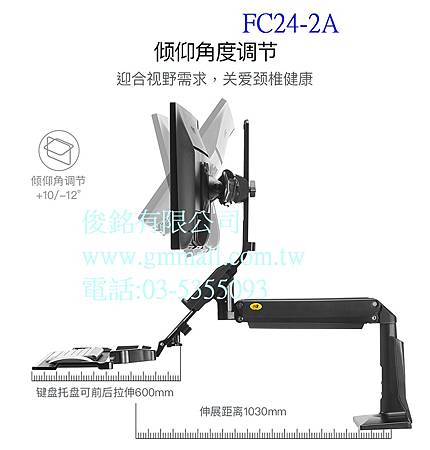 【俊銘Mall】NB FC24-2A 氣彈簧式液晶雙螢幕坐站兩用鍵盤支架,適用19~24吋鍵盤螢幕支架,支臂可做傾仰/升降/拉伸/旋轉功能,人體工學雙螢幕工作站,(歡迎來電洽詢優惠-可批發/零售/自取)
